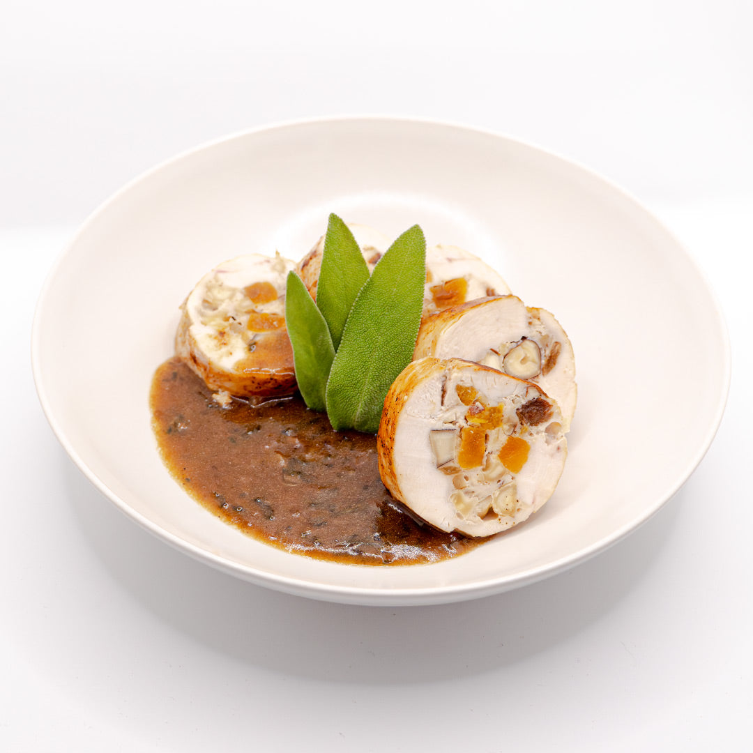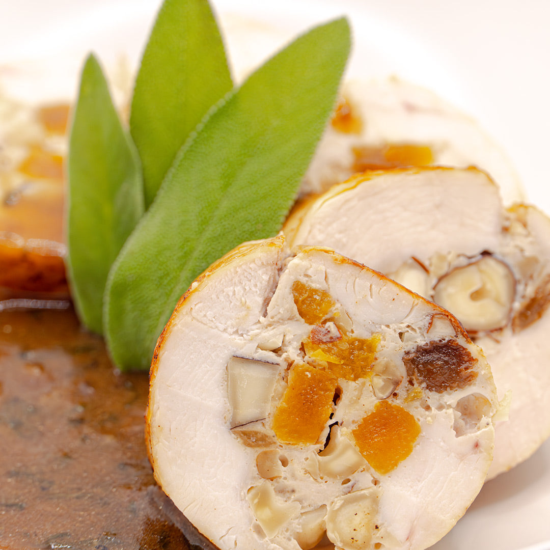 Hähnchenbrust gefüllt mit Nüssen & Trockenfrüchten an Salbeisoße